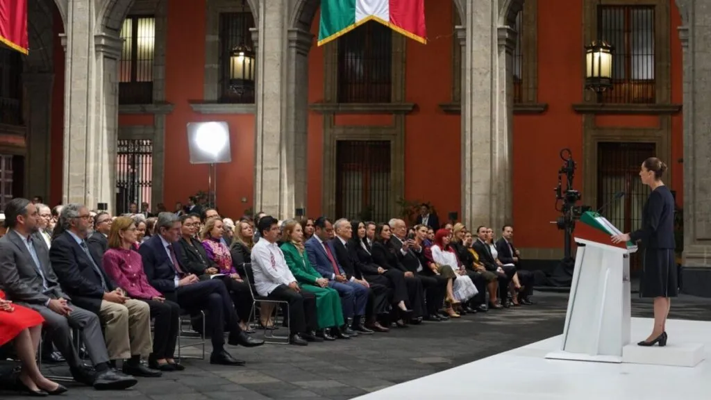 La mandataria aseguró que en los últimos 12 meses se aprobaron 19 reformas constitucionales y 40 nuevas leyes, a las que calificó como un “cambio profundo” frente a los rezagos heredados del neoliberalismo.